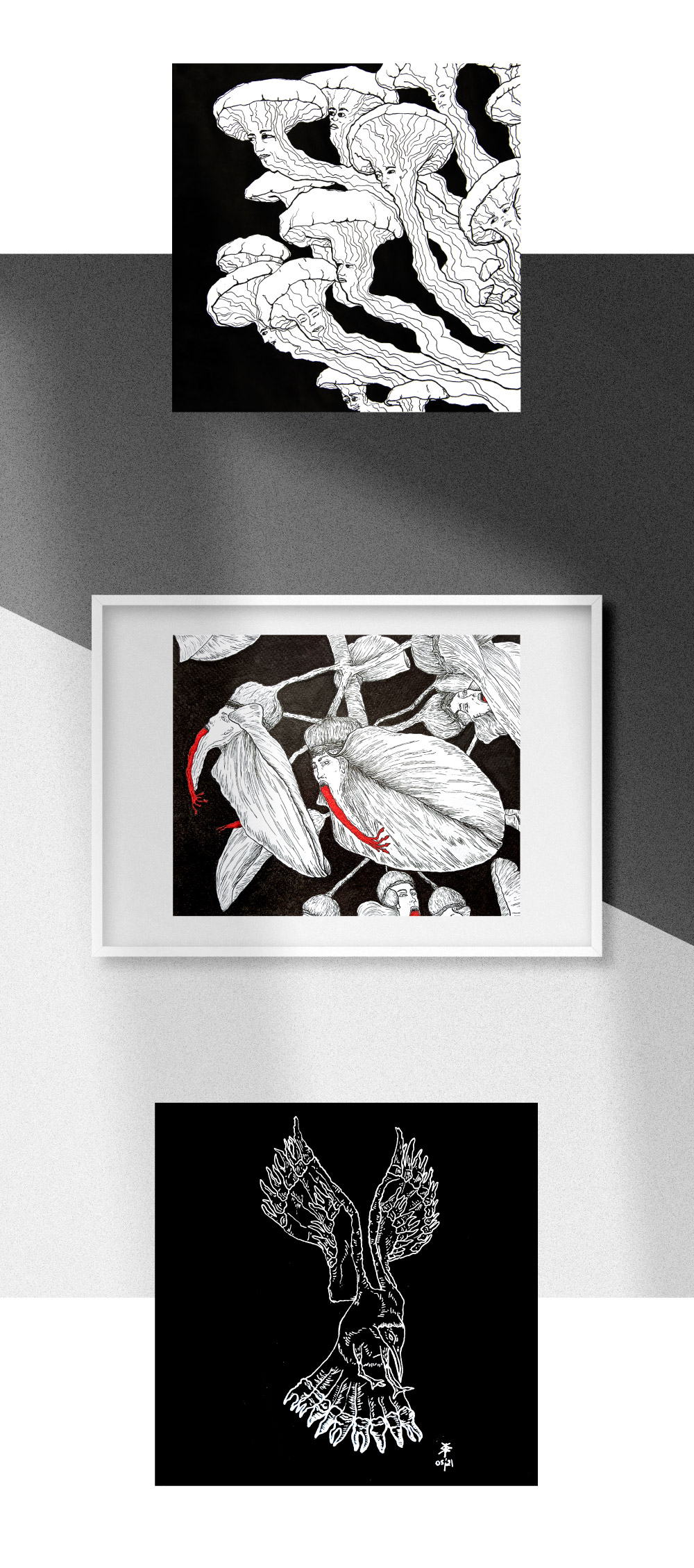 Project carried out in Bologna with chinesse ink and markers. The basic idea was to think of plants and animals in analogy in situations that express a particular sensation. Taking them out of context is an optimal exercise for creative development.